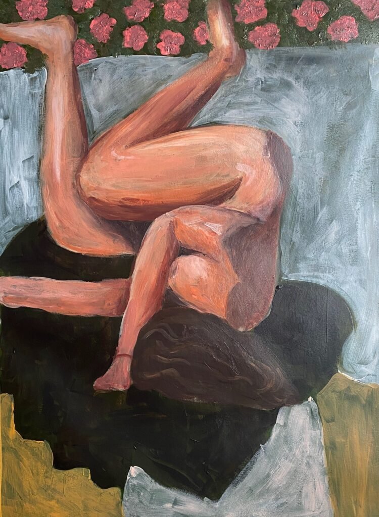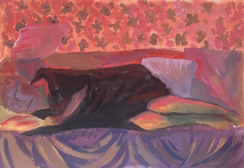 Abbie Thomas’ main focus is portraiture, working with observational painting and drawing. After struggling with body image for many years, Thomas decided to channel the discomfort she felt into her work, drawing and painting her body and face in multiple ways. This was to convey the different aspects she sees in herself on a daily basis, and how she feels her body never looks the same. Through these works, Thomas hopes to find a sense of peace within herself and to look at her paintings without feeling discomfort.